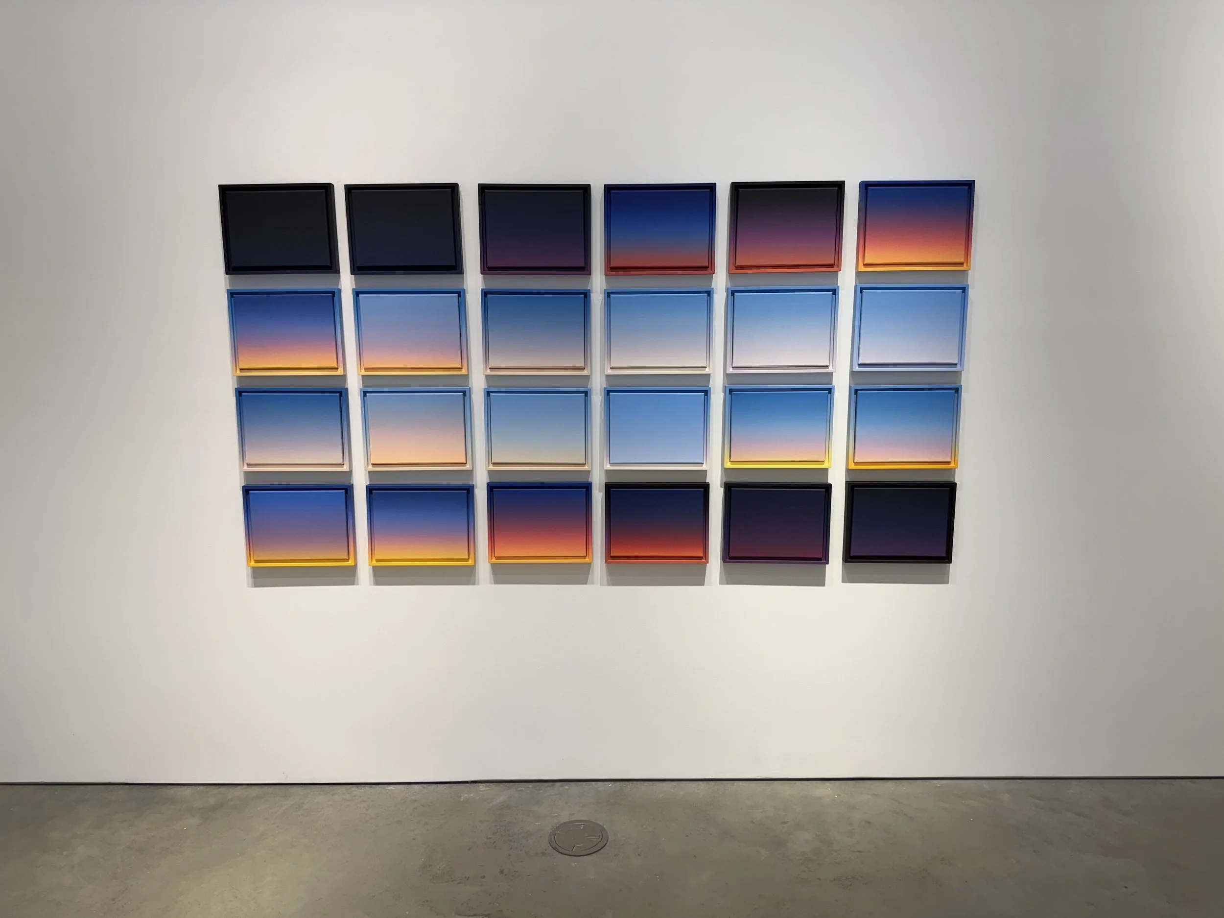 January 19, 2025 (24 hours), 2025Acrylic on canvas in hand-painted artist frames,
